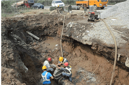 “在黃粱夢鎮(zhèn)新二中附近107國道路上,有清水從地下冒出來了。”近日上午8點20分,自來水公司供水服務熱線3113771接到熱心市民電話反映,107國道路附近發(fā)生爆管且黃粱夢鎮(zhèn)水壓降低。接到這一消息后,自來水公司立即組織搶修人員趕往現(xiàn)場。經(jīng)搶修人員判定,是通往黃粱夢鎮(zhèn)直徑400毫米的輸水主管道發(fā)生爆管。通過現(xiàn)場勘察和利用管網(wǎng)地理信息系統(tǒng)定位,最終確定了輸水管道的受損點,并快速制定出搶修方案。從近日上午開始,自來水公司組織了20余人的搶修隊伍、2部搶修車輛、1臺大型挖掘機,兩臺發(fā)電機開始連續(xù)搶修。
